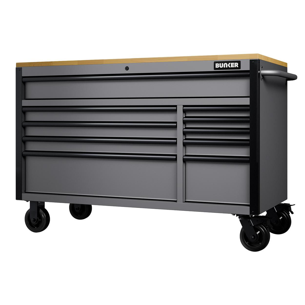 Bunker 10 Drawer Workbench Roller Tool Cabinet, 56 Inch, Light Grey