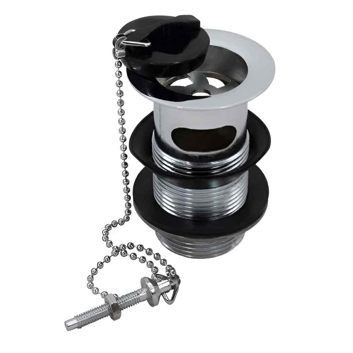 The DISTINCT 1 1/4" BRS BASIN WASTE SLOT POL PLUG CHAIN STY CP 201249-DIST from Embrass Peerless is a basin waste designed for basin applications. It is made from brass and metal and features a chrome plated finish with black and silver colouring.