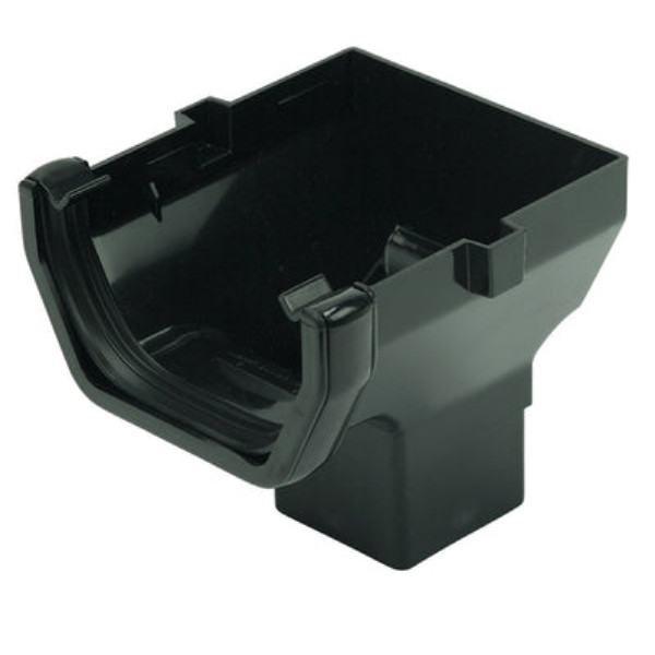 The FloPlast 114mm Square Stop End Outlet in Black (ROS2B) is a uPVC fitting designed for square line guttering systems.
