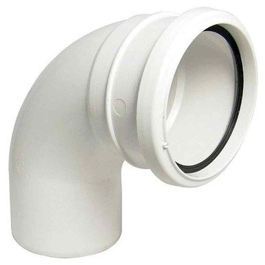 The Floplast Soil & Vent Pipe is a 110mm diameter, white, single socket bend fitting, ideal for high temperature waste discharges. It's a push-fit soil pipe bend with a 92.5-degree angle.