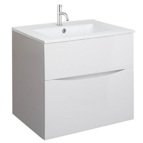 The Crosswater Limit 600 is a wall-mounted single drawer unit with a vitreous china basin. Finished in white gloss, the rectangular basin has one tap hole and measures 610mm in length, 465mm in width and 171mm in height, with a bowl size of 285mm.