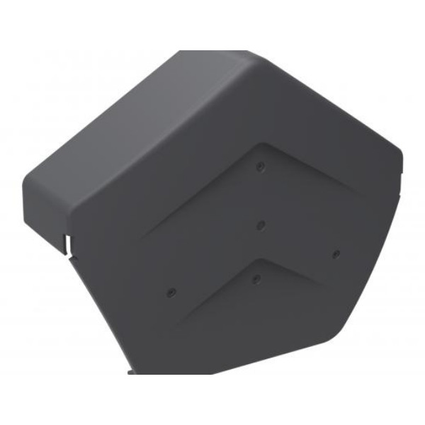 The Manthorpe PP Dry Verge Angled Ridge End Cap is a grey, textured polypropylene ridge end cap, ideal for roofing applications. It measures 271mm x 228mm x 76mm and weighs 0.164kg.