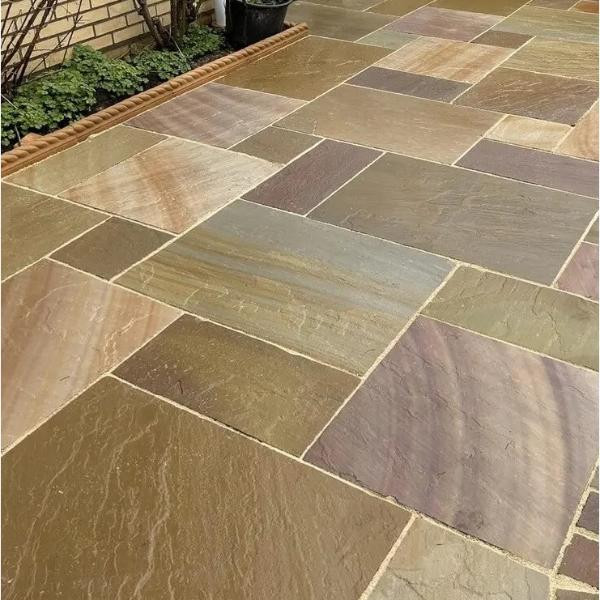 The Rippon Buff Project Pack offers 20.03m2 of naturally riven sandstone paving, ideal for enhancing your outdoor space.